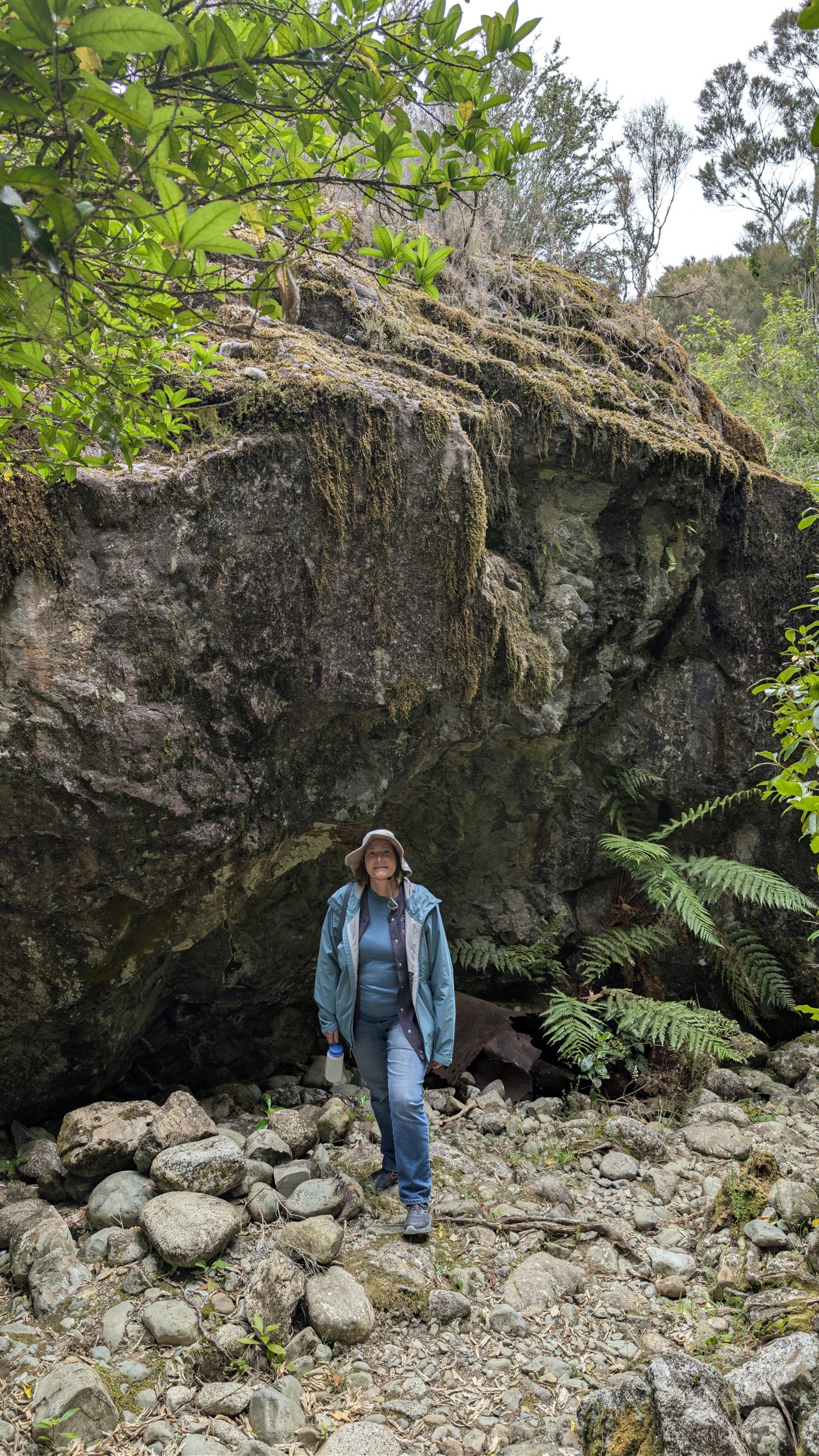At Glade House, a host checked us in and gave us our assigned rooms. We had just a brief stop to drop our packs in the room, and then we had a 2 km, 1.5-hour nature walk up the Glade Burn. We were split into 3 groups, taking off into different directions since the walk was a loop hike. Before the start of the walk I took a quick photo of the swinging bridge across the Clinton River. We would be traversing it at the start of the hike tomorrow.