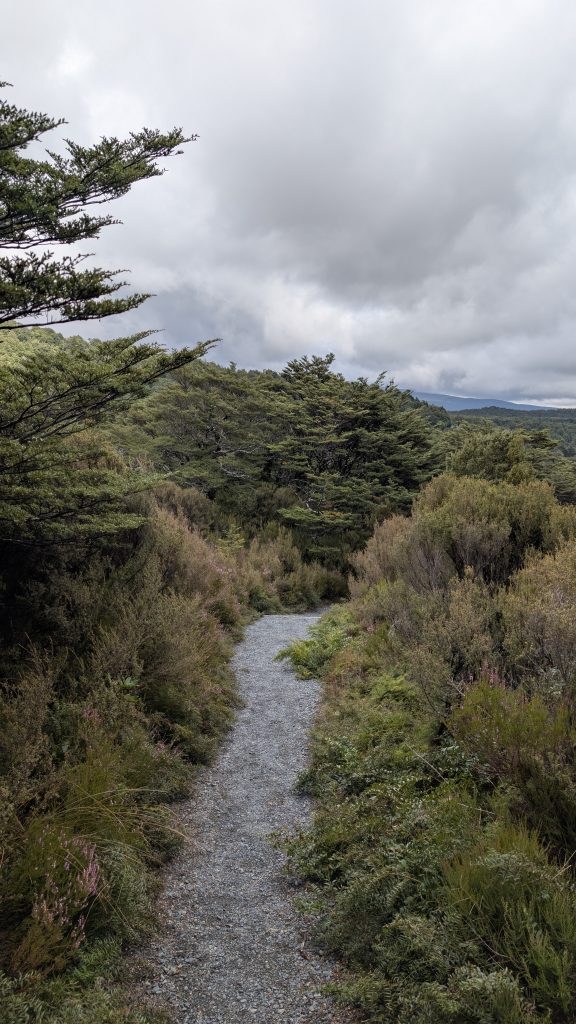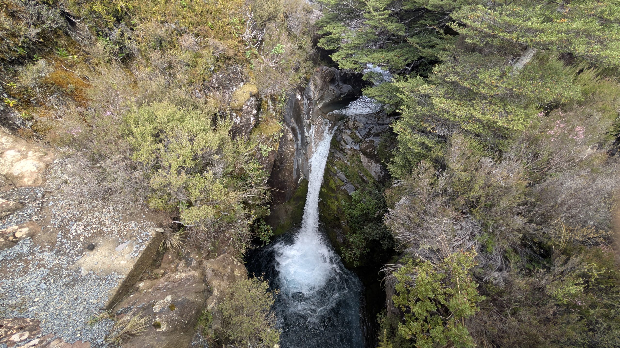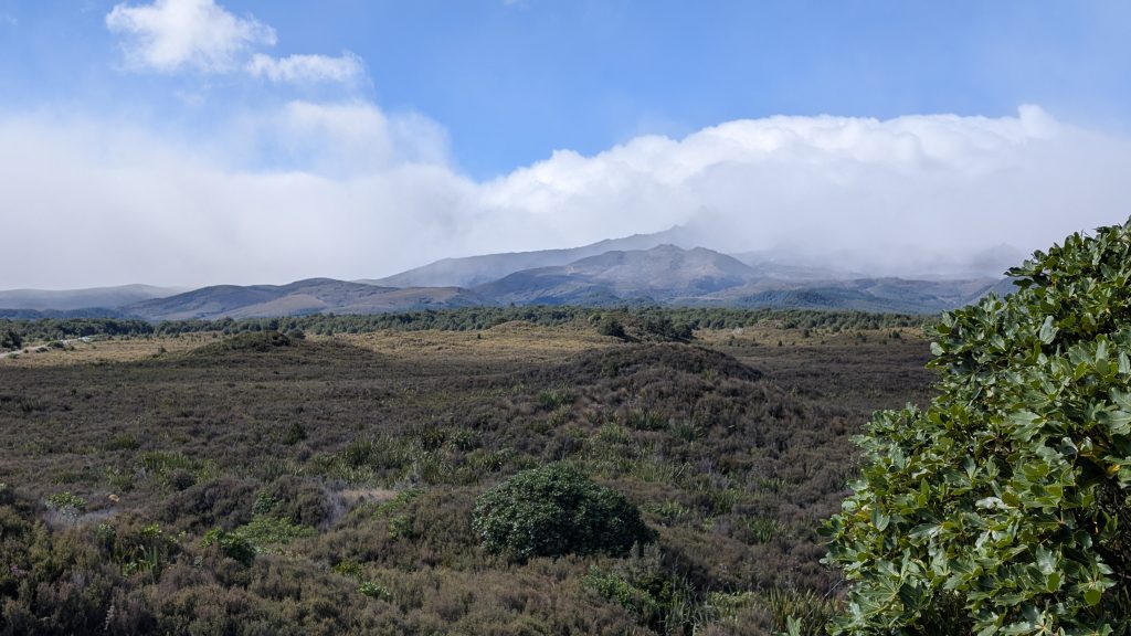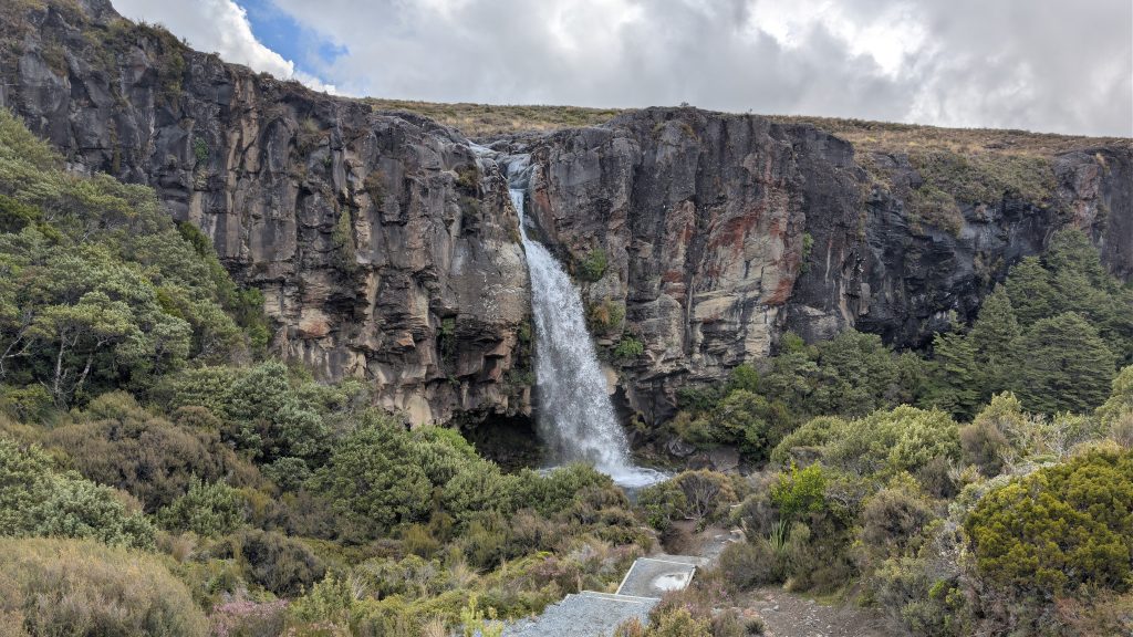 Afterwards the weather cleared and was nice for a few hours. But the volcanoes remained cloud covered. I decided to go on the hike to Taranaki Falls. We had already done this hike in 2023, but I wanted to see the waterfall again. The waterfall was flowing nicely.