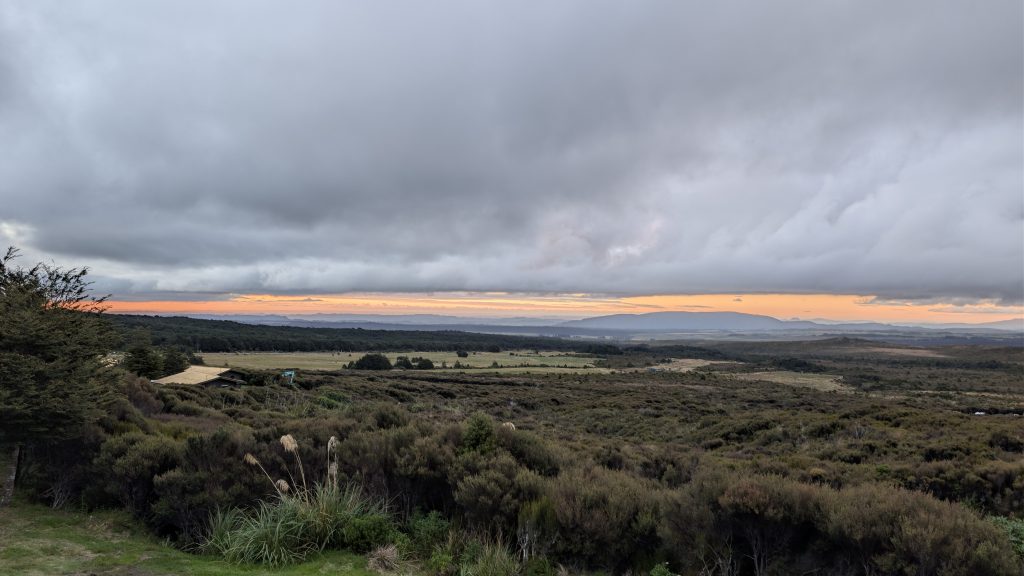 Back at the room we saw sunset colors from the balcony, and finally, one view of Mount Ngauruhoe.
