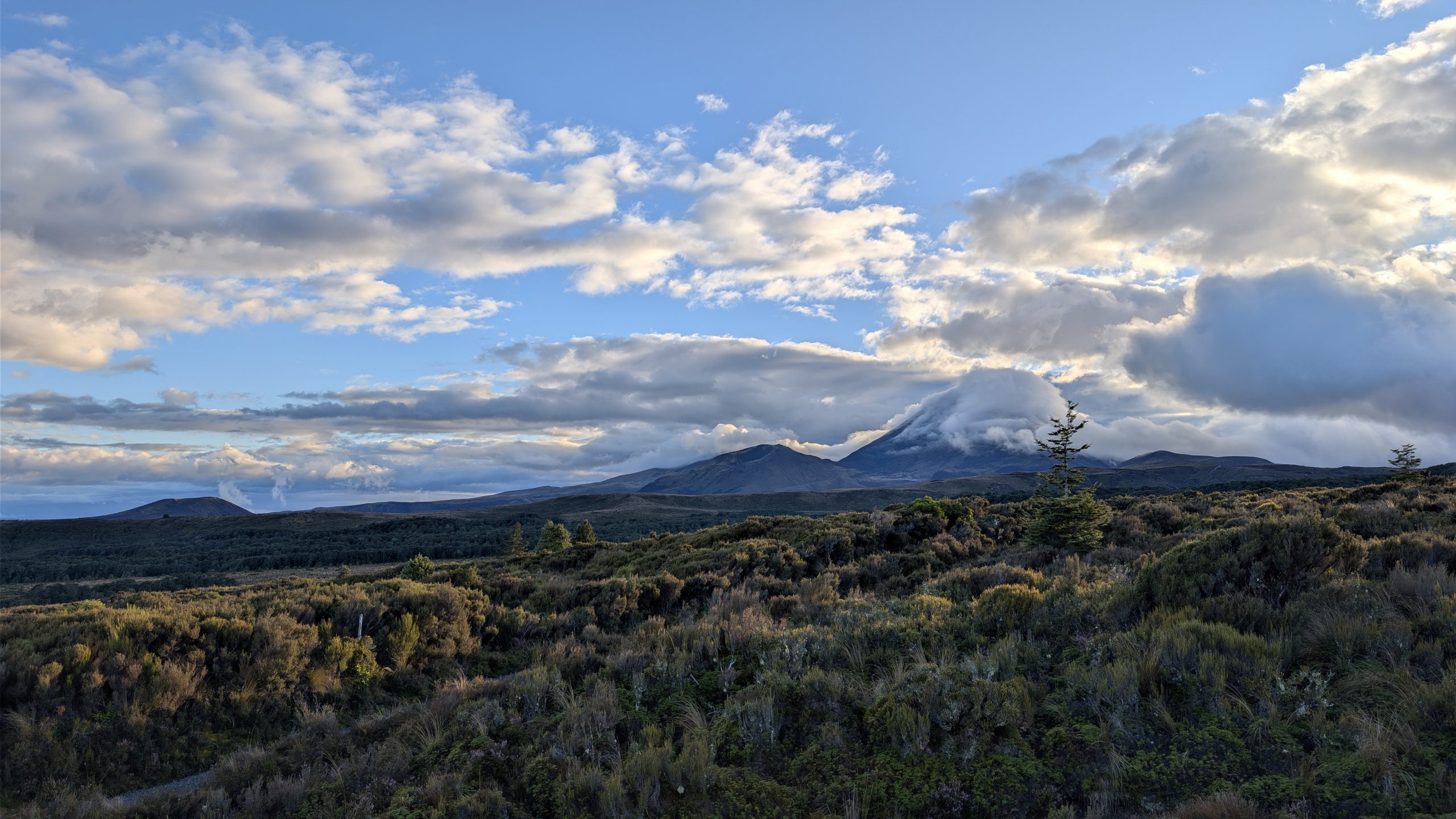 It turned out that evening had the best views for the entire time we were there. At one point the sun came out briefly and produced a small rainbow near where the famous Lord of the Rings "Mount Doom" (Mount Ngauruhoe) was located.