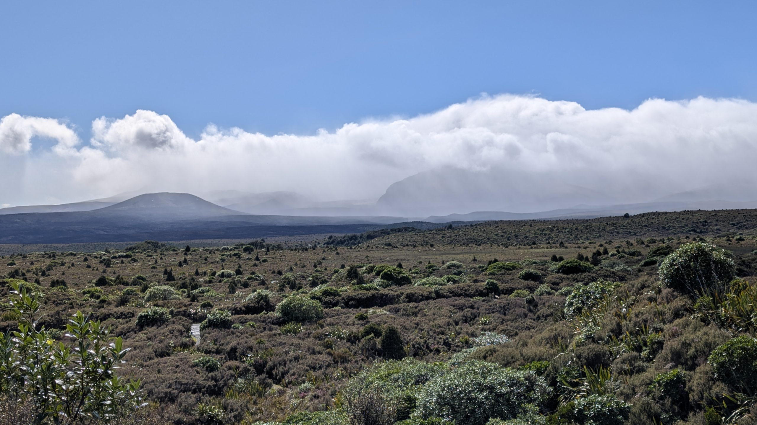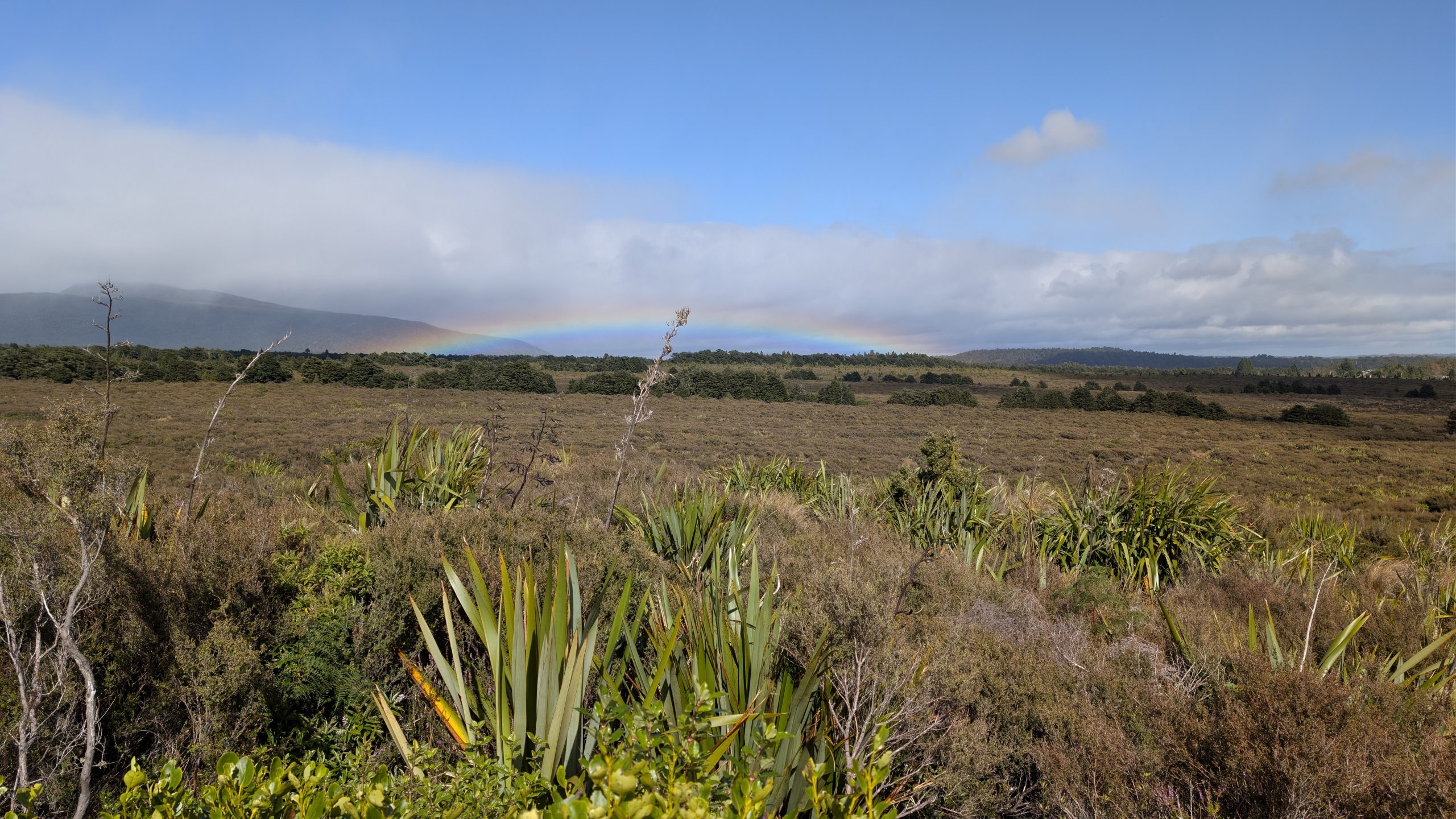 The clouds parted brieflyMount Ngauruhoe is somewhere behind that rainbow