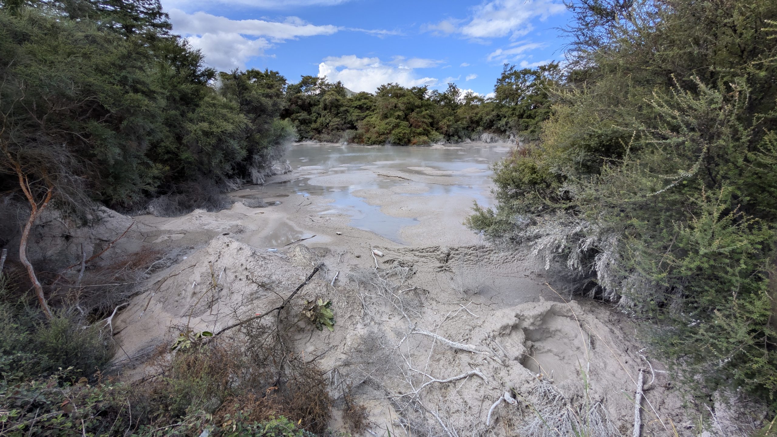 Back at the car, I had a nice little nap until eventually Heinrich rejoined me. We left the park early and drove back to see the free Waiotapu mudpot which we both had enjoyed watching the night before.
