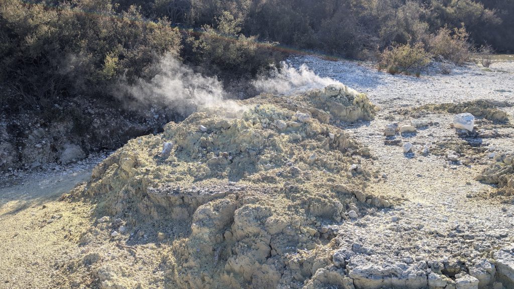 Our next stop was the Tokaanu Thermal Reserve near Turangi. We had visited here before in both 2019 and 2023 and had been successful in watching Taumatapuhipuhi Geyser erupt. But today it was not to be: we saw some boiling in the geyser crater, but the amount of debris at the edge of the crater indicated that a recent eruption had not occurred.
