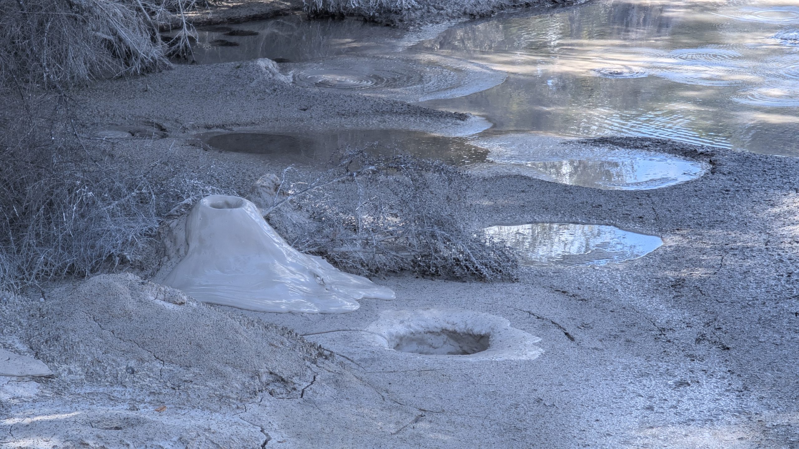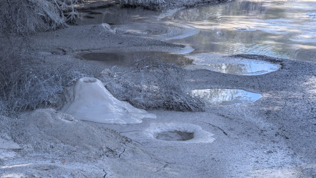 Exploding mud at WaiotapuA view of some of the drier mud cones at the shore of the mud lake