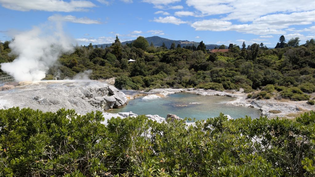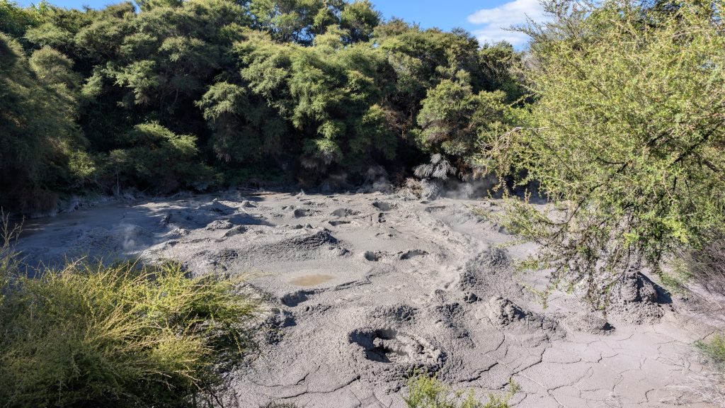 On the drive back to Rotorua we stopped at the Te Kopia Mudpots. The trail to the mudpots was quite overgrown, so not many people had visited there. This was our third visit to the area, and not much had changed.