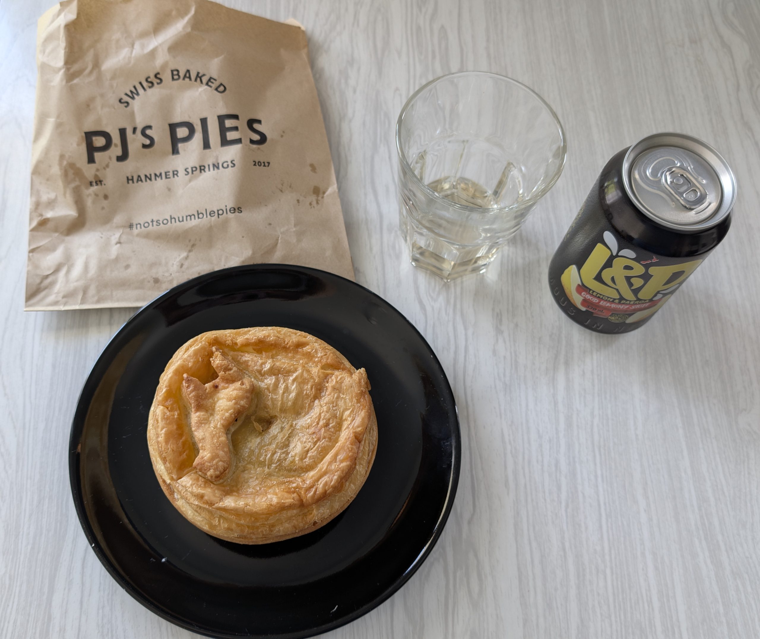 For lunch we drove back into town and purchased a couple of meat pies at PJ's Pies. I tried the South Island lamb pie that was the special for the day, and Heinrich had the Angus beef and cheese. I was a little bit disappointed in my selection since I thought it was too spicy. But Heinrich enjoyed his.