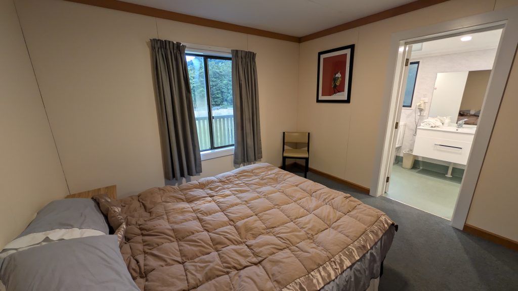 At the lodge a host greeted us and gave us our assigned room number. Cookies and a cold drink were provided. We checked into our room and then gathered with the others outside on the deck for beer and wine. A charcuterie board was provided before dinner. We heard calls from some kea birds, and I briefly saw one fly off of the roof into the forest.