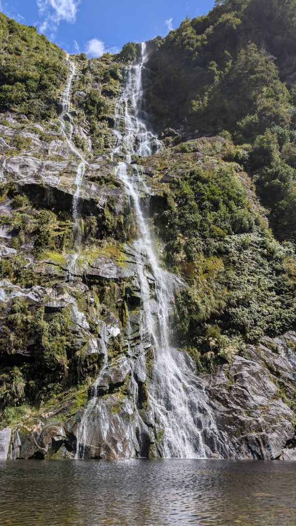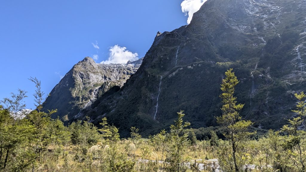 We returned to the main trail and continued to follow the Clinton River. By now the weather was mostly clear, revealing the beautiful mountain peaks around us. We saw many waterfalls along the way. The recent rain really helped the waterfalls!