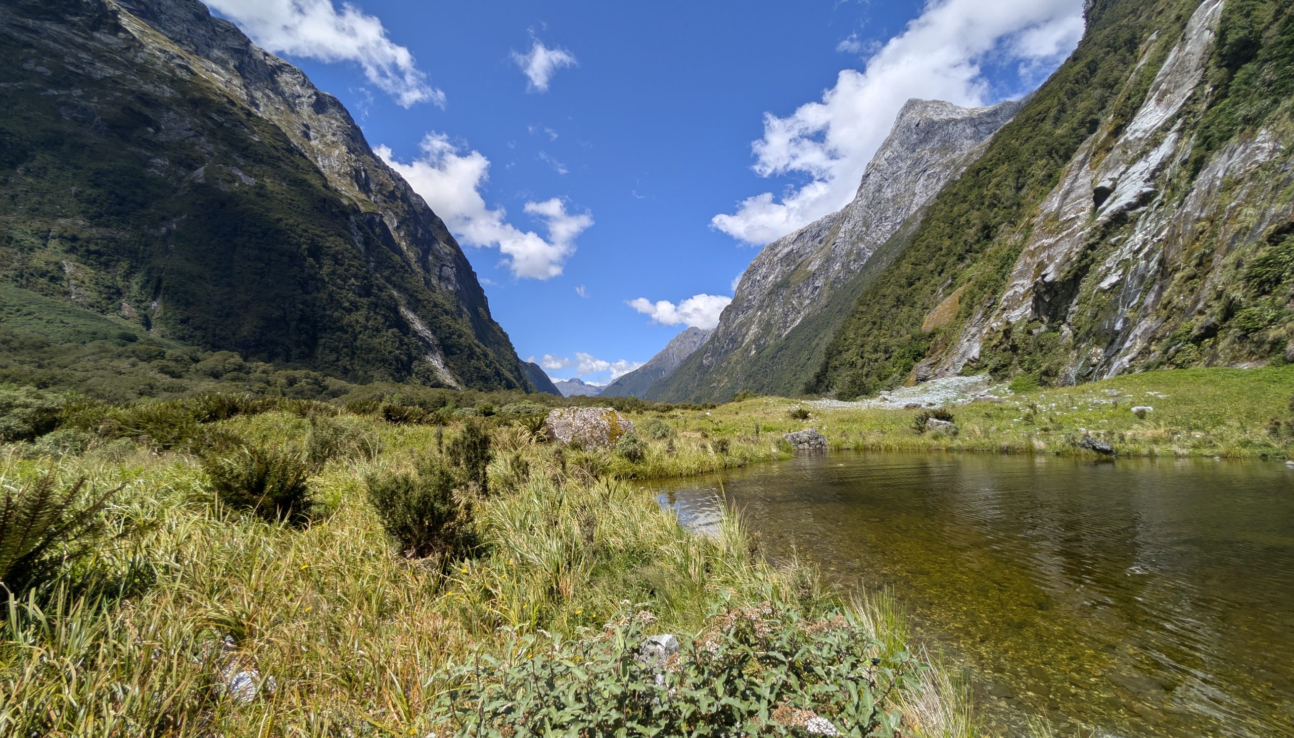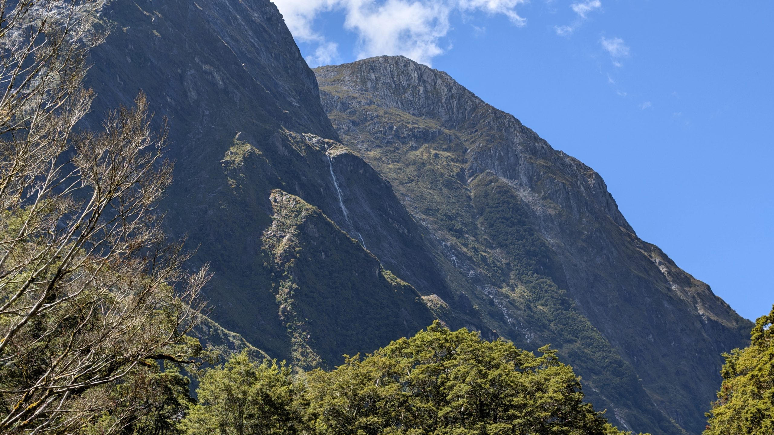 We returned to the main trail and continued to follow the Clinton River. By now the weather was mostly clear, revealing the beautiful mountain peaks around us. We saw many waterfalls along the way. The recent rain really helped the waterfalls!