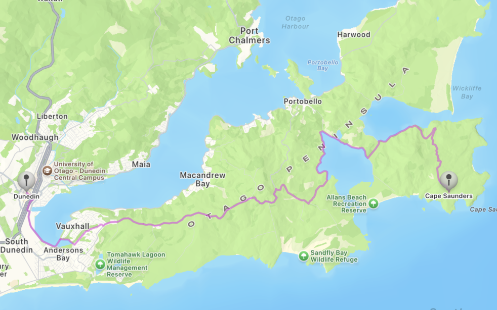 Otago Peninsula, looking south toward the city of Dunedin