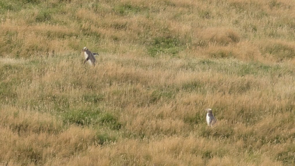 While we were on the beach we spotted three more Hoiho penguins standing in the bush, but they were too far away for me to get any good pictures.
