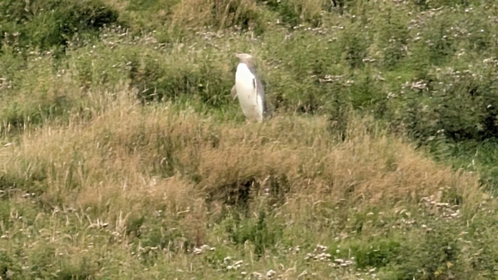 Our next stop was where the fun really began. Penguin viewing time! We were lucky enough to spot eight yellow-eyed penguins (Hoiho) on the beach and near their nests.