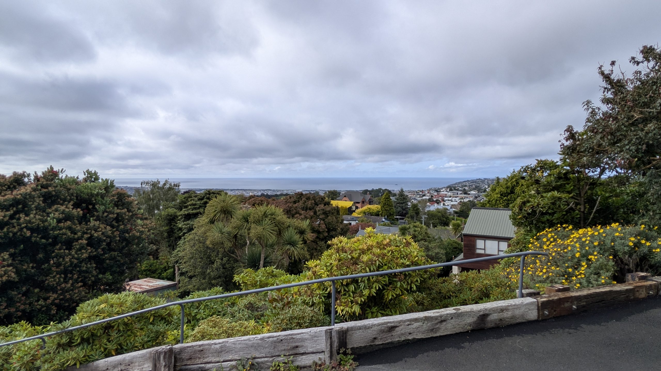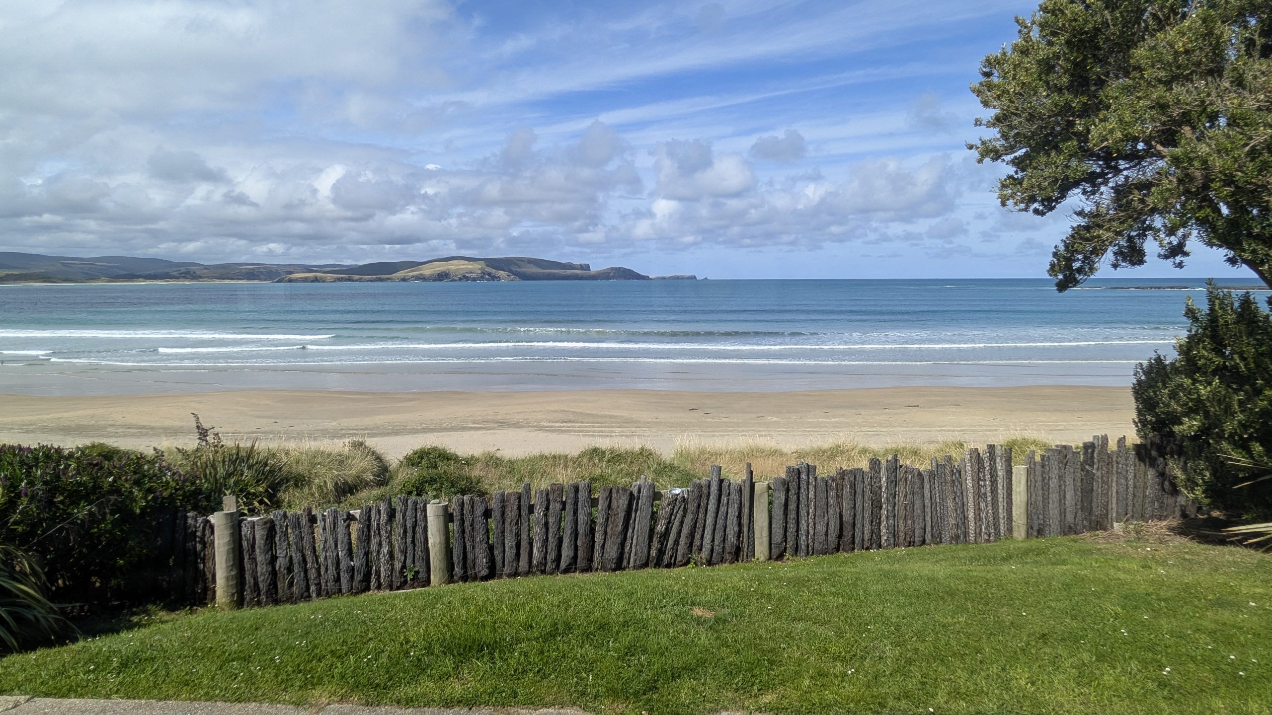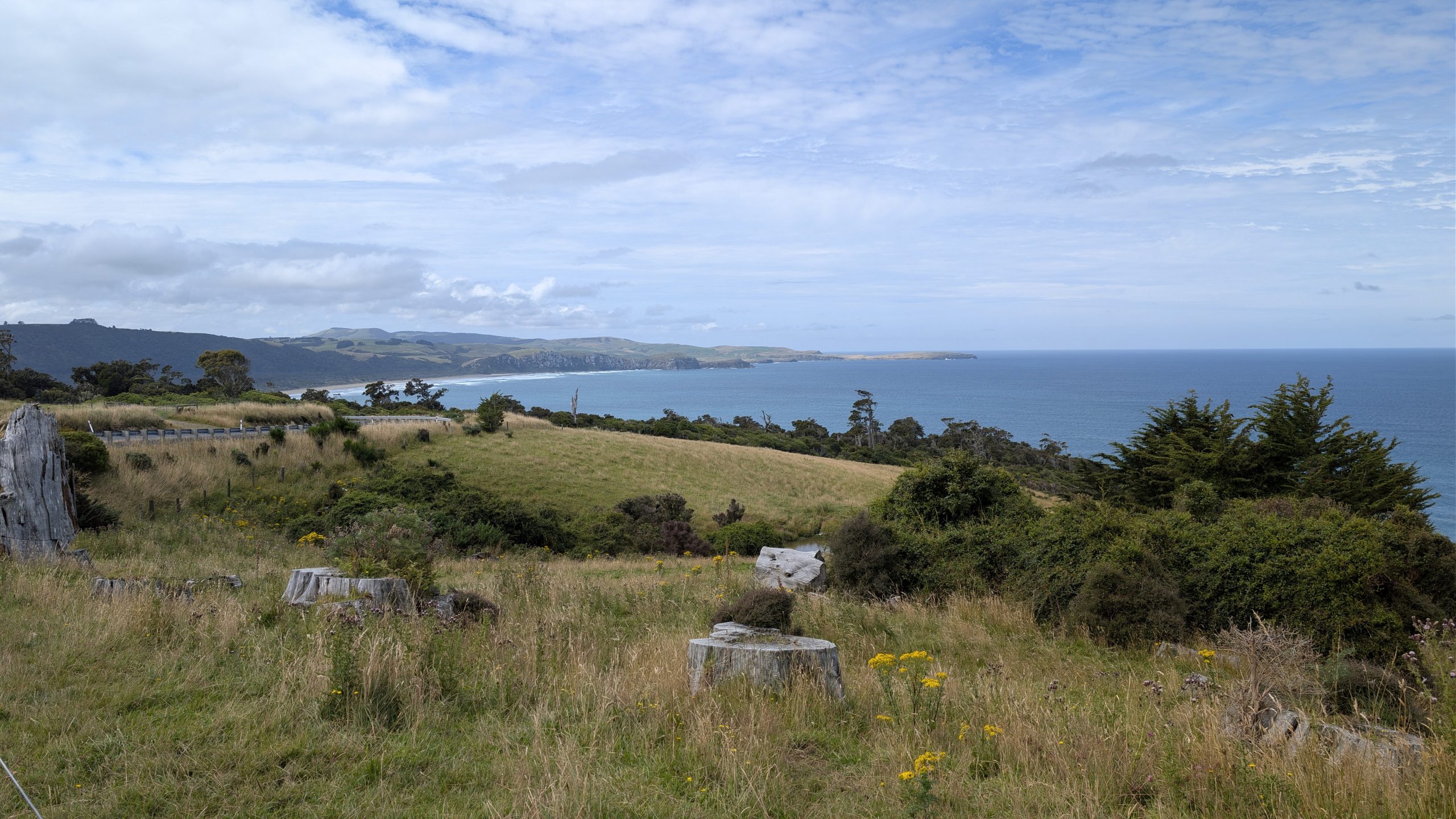 It was mostly cloudy when we checked out of the AirBnb in Dunedin to travel south to Curio Bay. We enjoyed our stay at the AirBnb: it had a wonderful view outside and was very quiet and private.