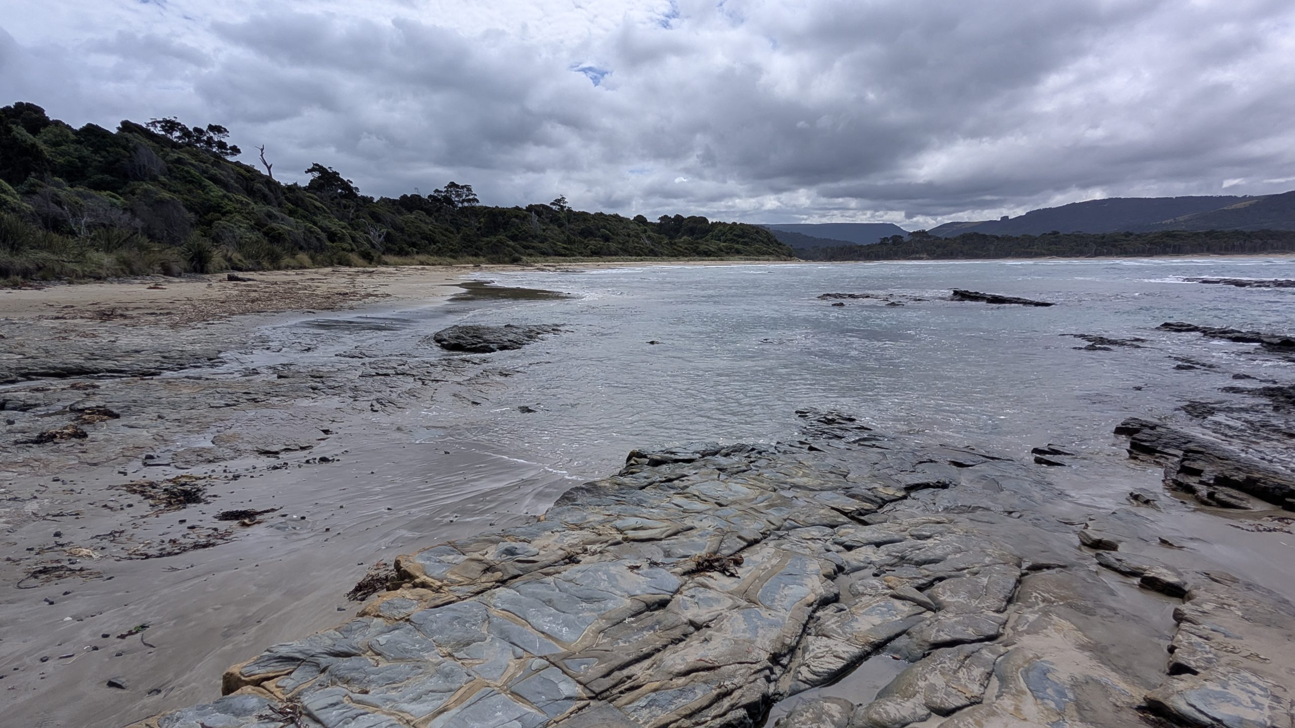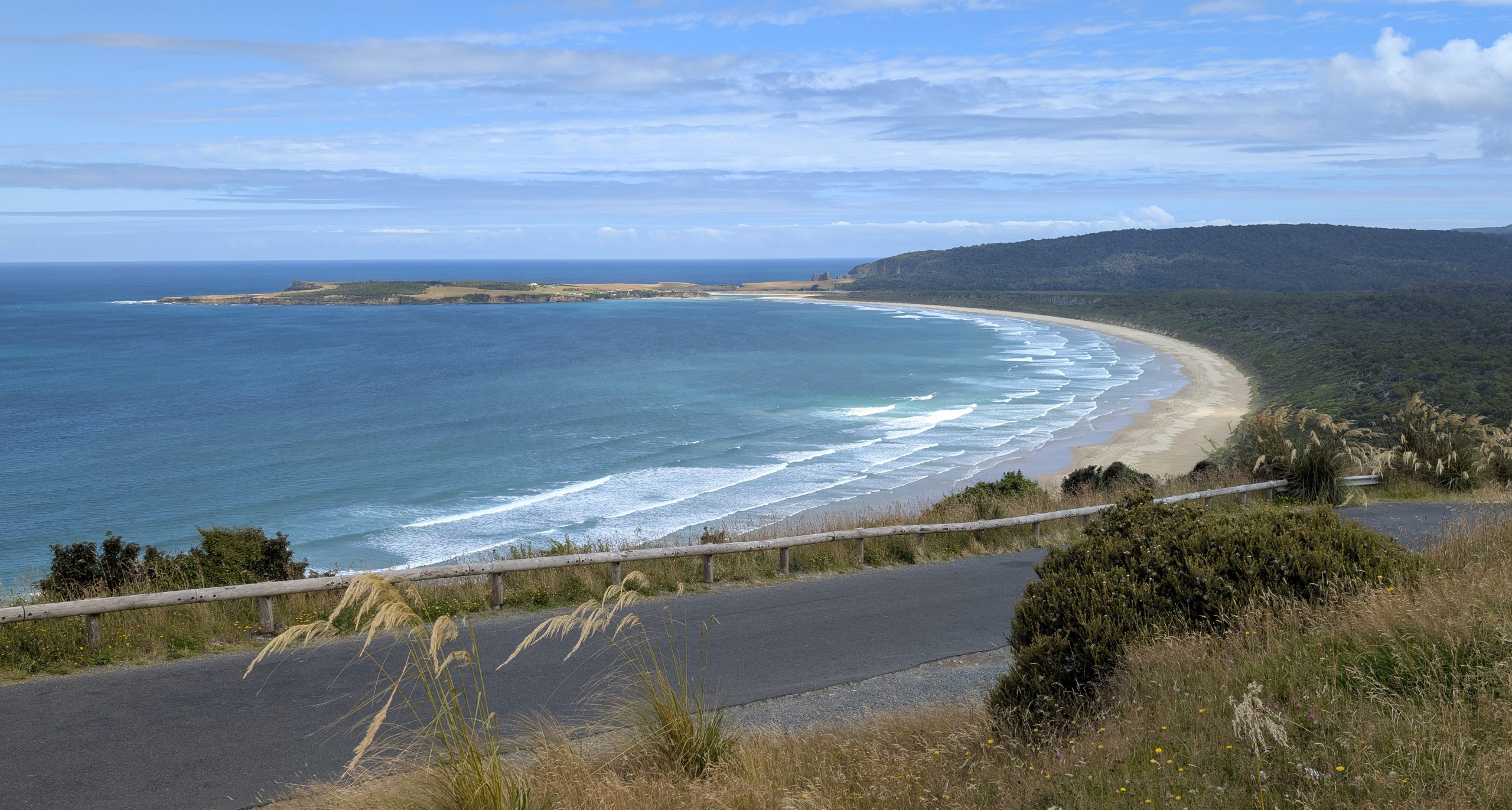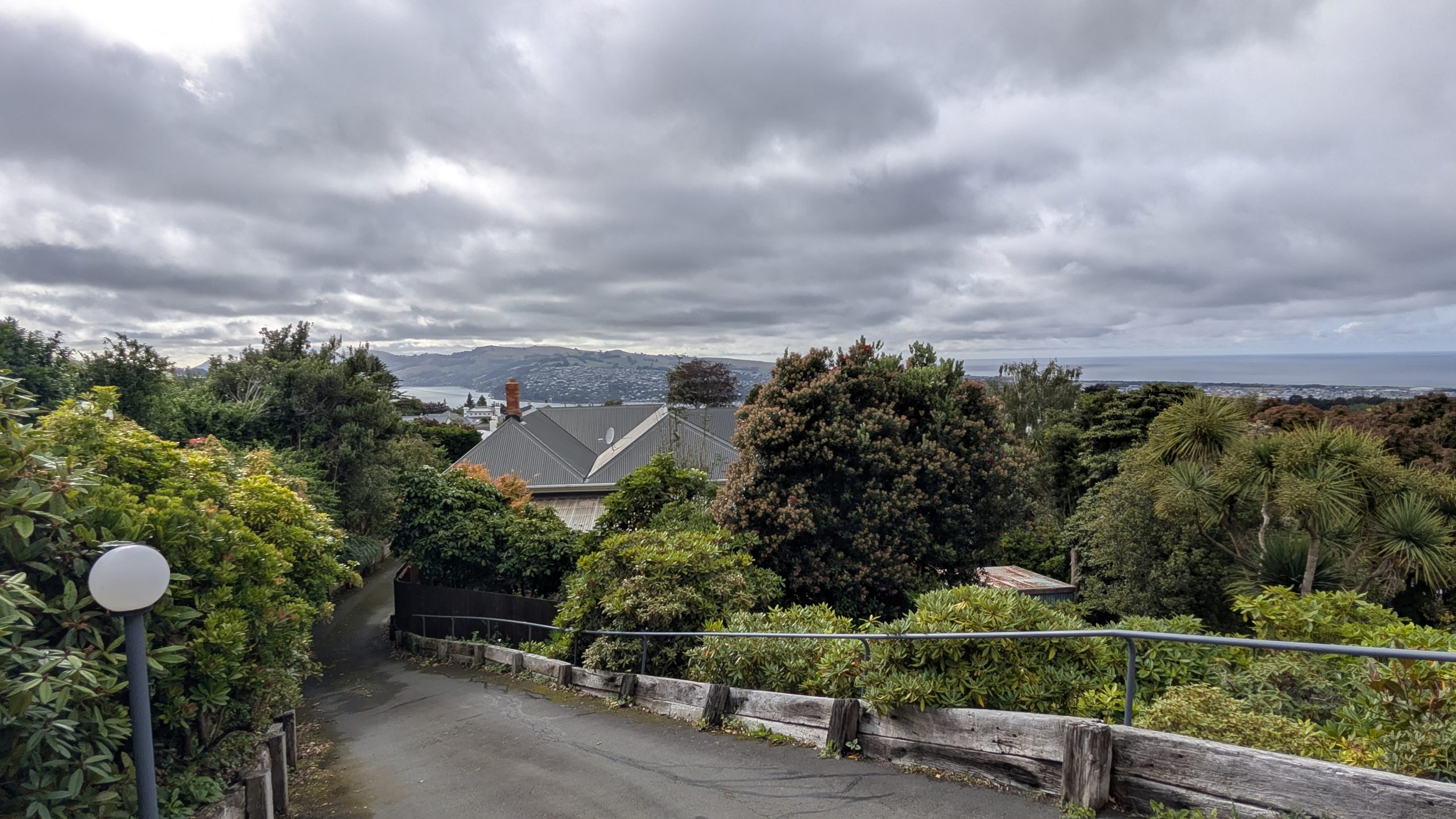 It was mostly cloudy when we checked out of the AirBnb in Dunedin to travel south to Curio Bay. We enjoyed our stay at the AirBnb: it had a wonderful view outside and was very quiet and private.