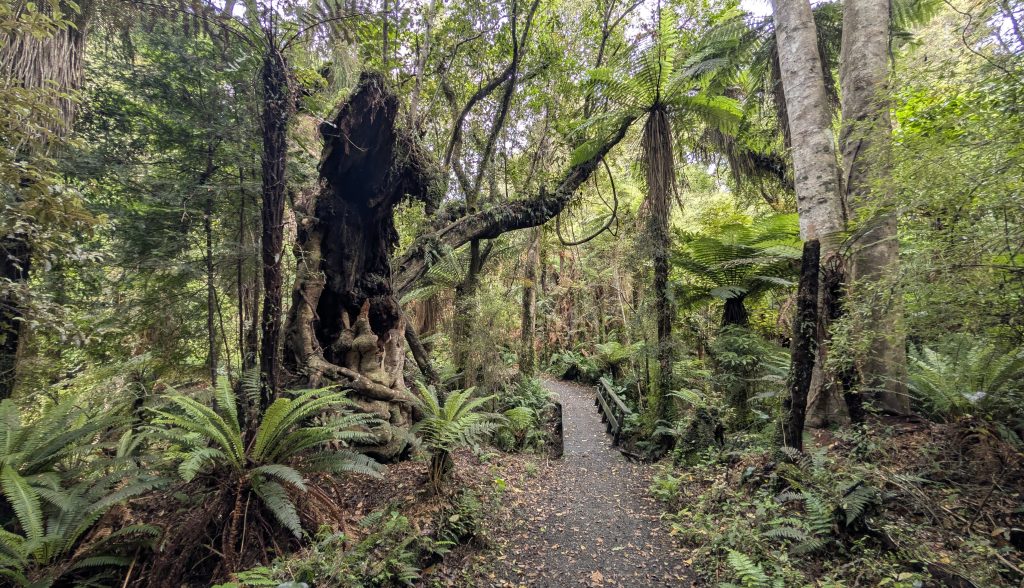 At a second stop in Papatowai, I hiked to Picnic Point. This was another easy walk through an old growth rain forest that led to a small beach where the Tahakopa River empties into Tahakopa Bay. There were some nice views of the bay.
