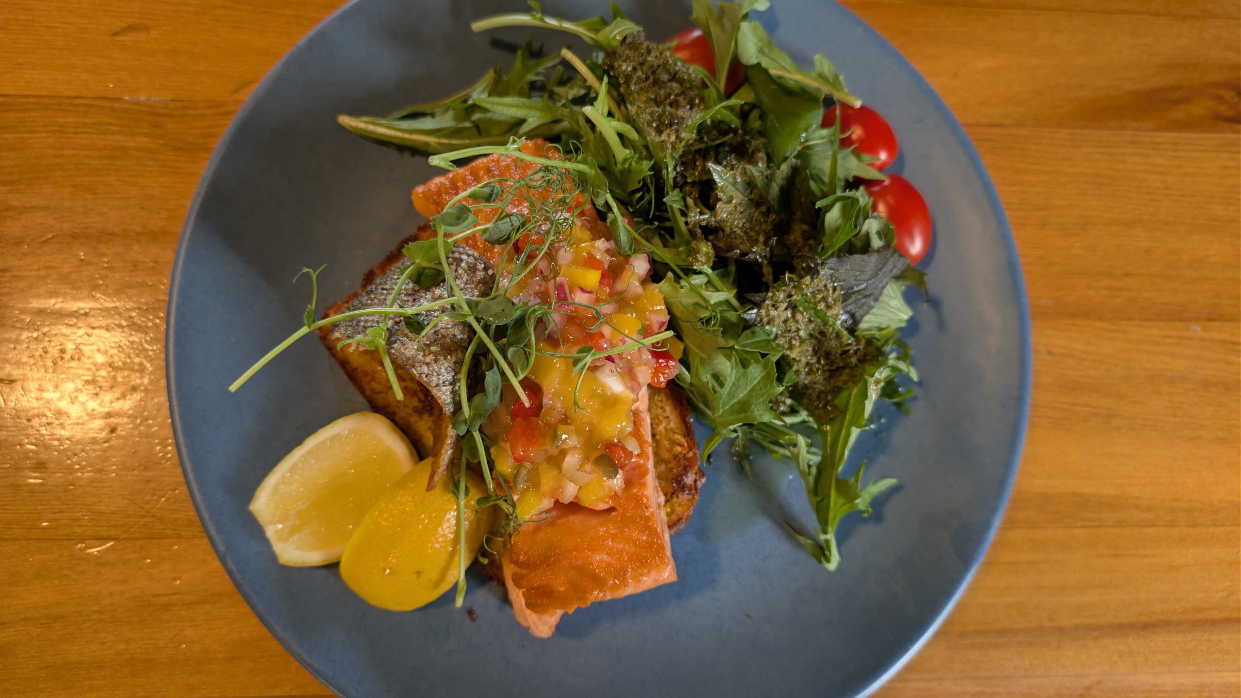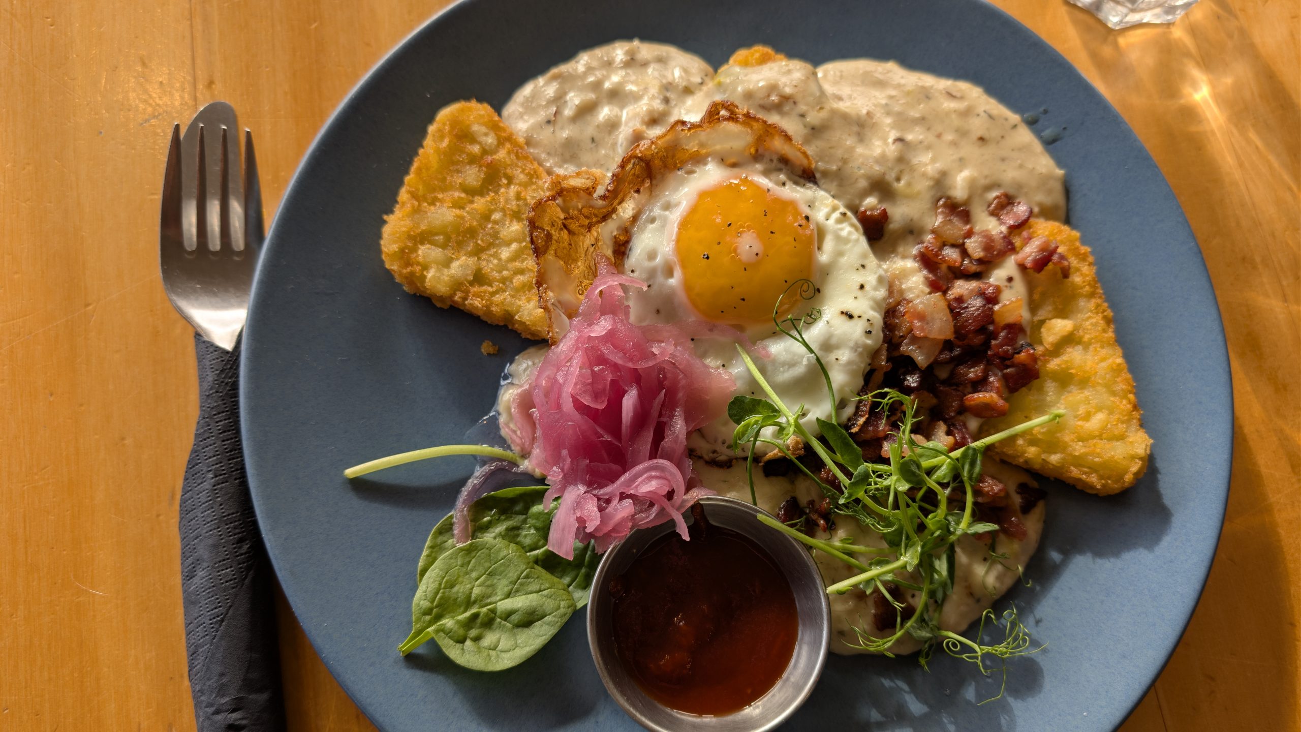 Fisherman's Breakfast with local smoked fish, hash browns, and a fried egg