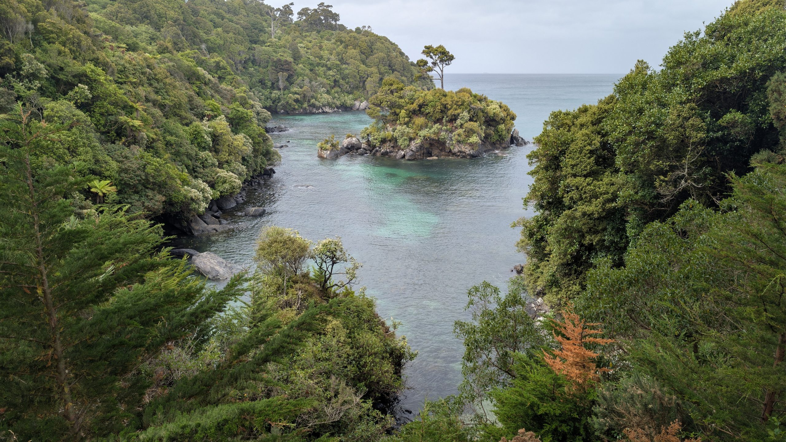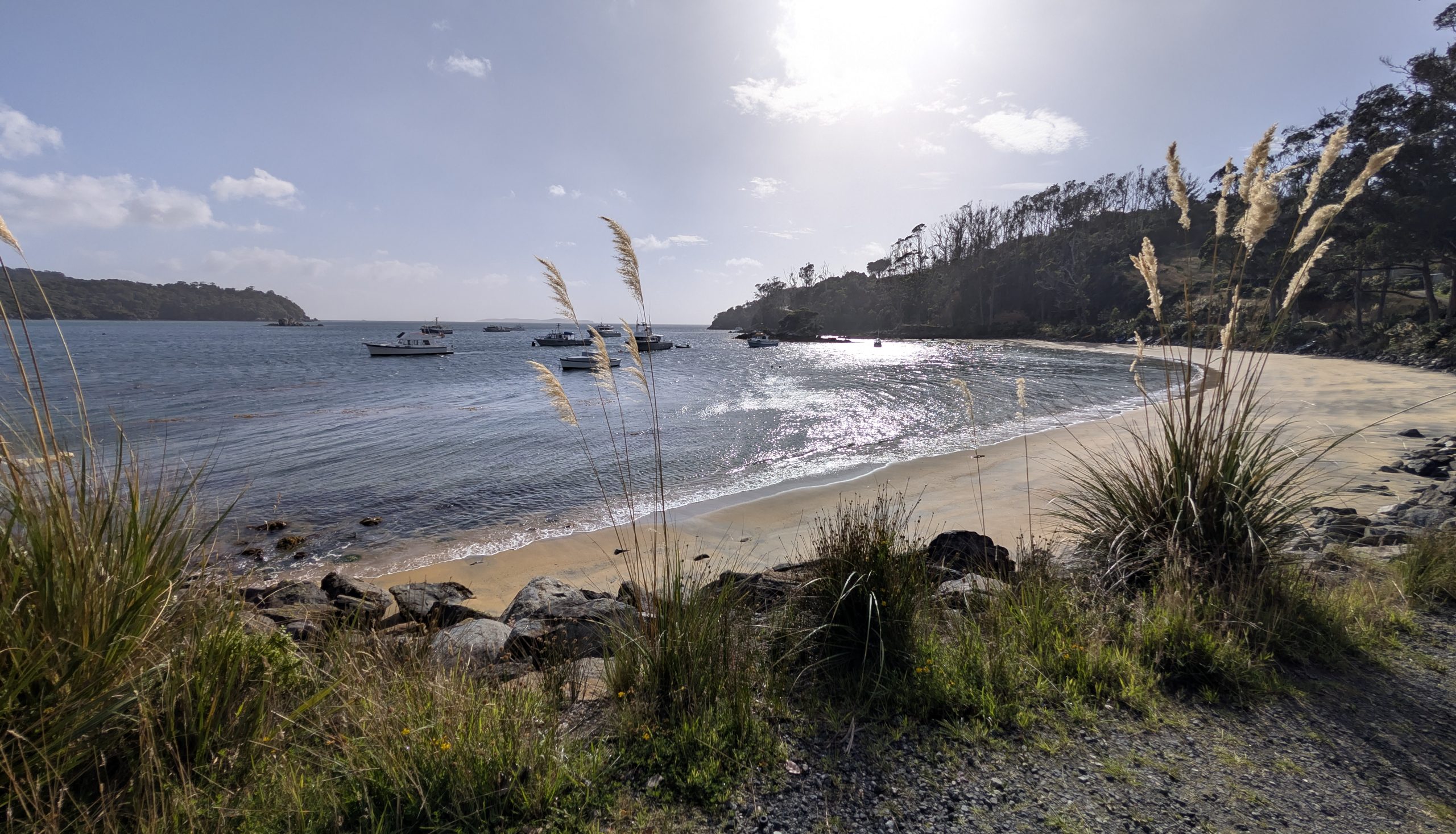 Halfmoon Bay view from Moturau Moana Native Gardens