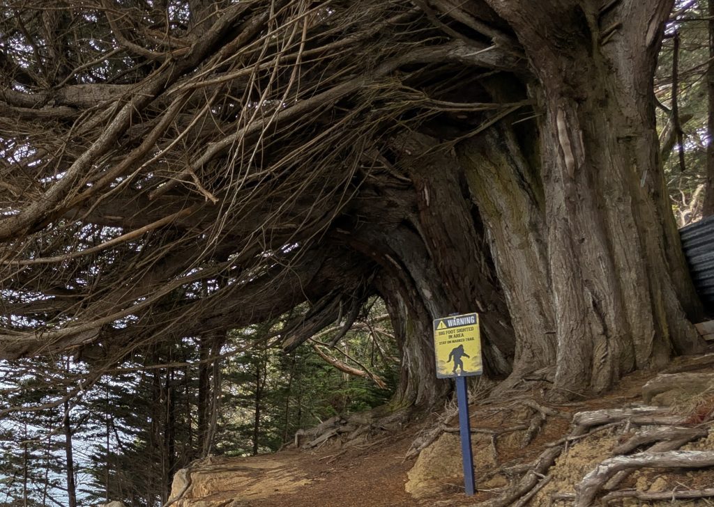 I continued on the trail, descending down gradually to Horseshoe Bay. It continued to rain steadily. Fortunately the downhill trail was much easier than going up. It ended at Horseshoe Point Raod, which was a dirt road that followed the shore of Horseshoe Bay. At the start of the dirt road was a funny sign.